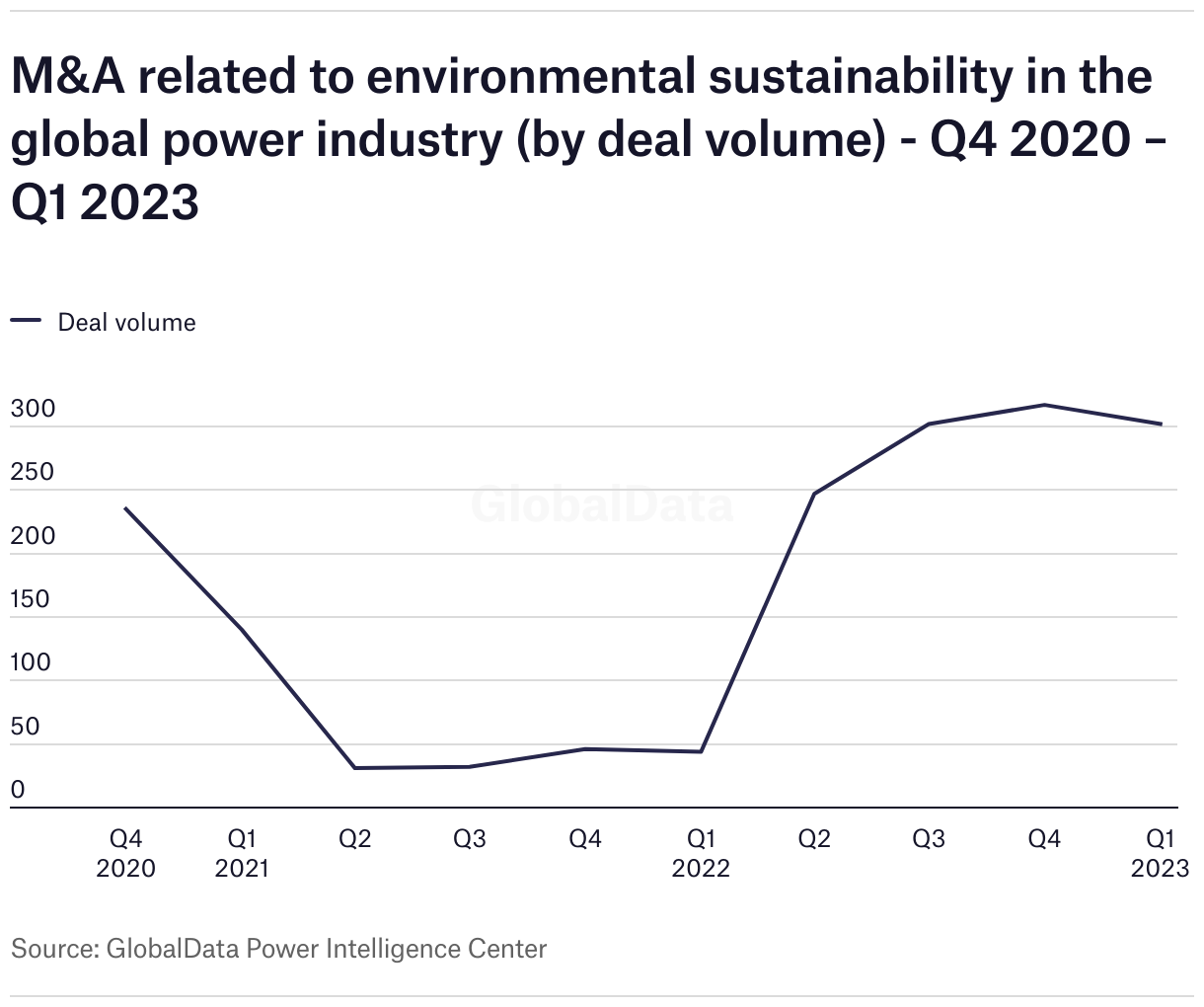 Analysis of the key themes driving M&A activity reveals that environmental sustainability accounted for 302 power deals announced in Q1…