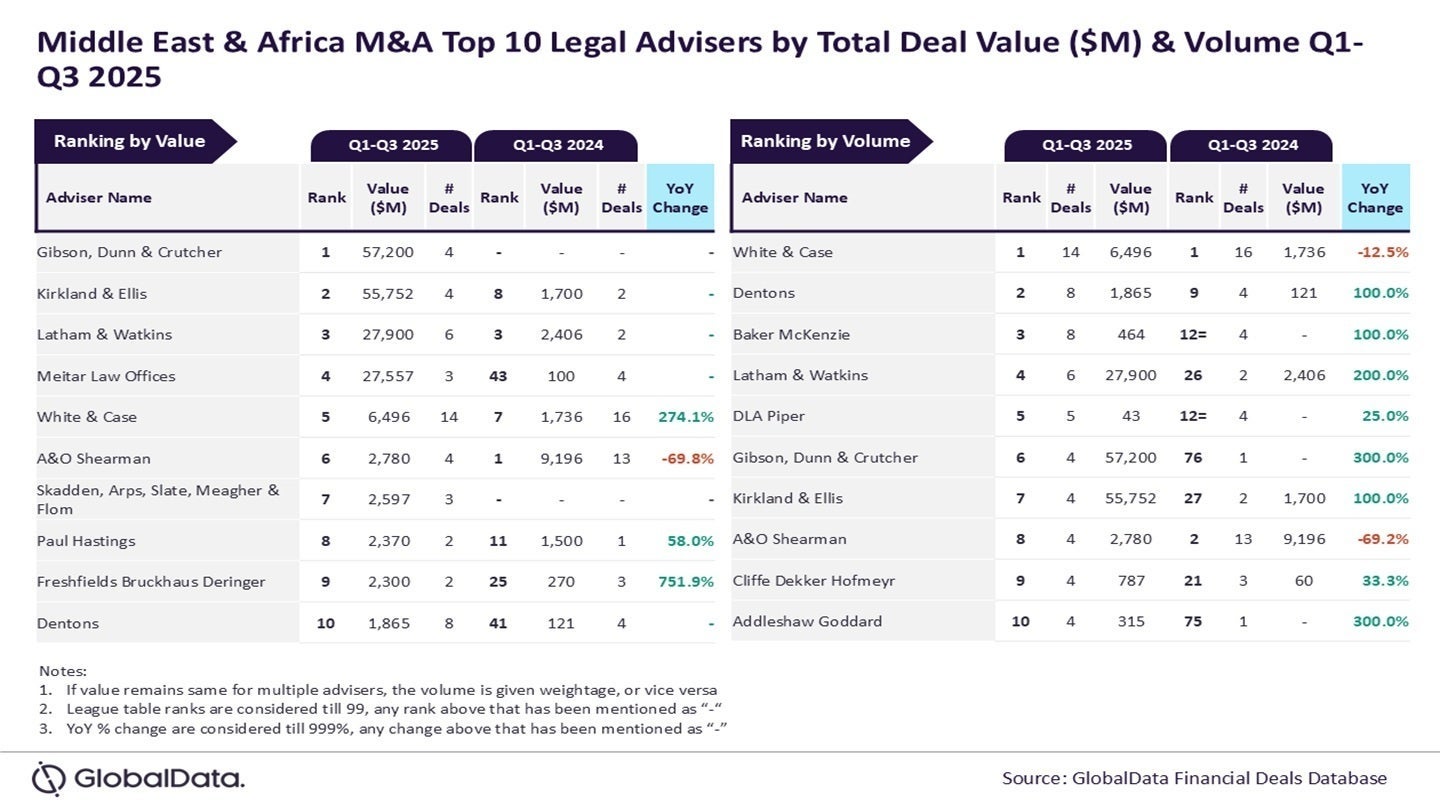 A&O Shearman and CMS have emerged as the top legal advisers in terms of deal value and deal volume, respectively,…