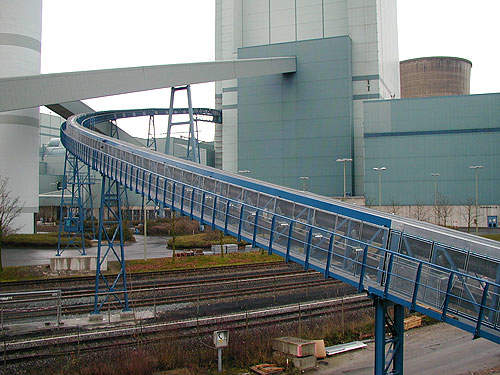 However, depending on the material characteristics, a tubular belt conveyor can also overcome even steeper gradients due to its closed form, which is not possible with conventional troughed belt conveyors. Dyckerhoff has also taken the opportunity of equipping the conveyor with superimposed horizontal and vertical curves. This has enabled the length of the conveyor to be minimised and a further cost reduction to be achieved. These references show that the company not only offers standard solutions but also plans, builds and installs systems. These are matched to the individual customer requirements down to the last detail.