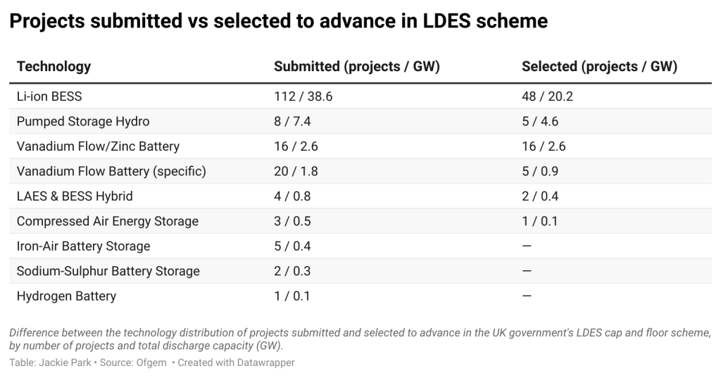 Ofgem launched the cap and floor scheme in April to encourage investment in projects capable of storing and releasing electricity for at least eight hours. It drew 171 proposals totalling 52.6GW of discharge capacity.