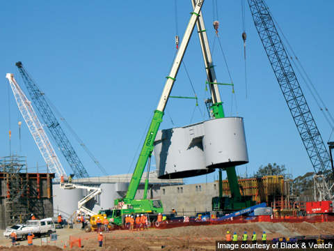 Projects April 12 2011 Bundamba Advanced Water Treatment Plant The Bundamba Advanced Water Treatment Plant (AWTP) is located in Ipswich, Australia. Construction of the plant started in September 2006. Stage 1A of the project received the Global Water Project of the Year Award in 2008. Clarifier tanks being installed at the plant. The delivery of the two clarifier tanks was one of the largest transport movements to be completed in south-east Queensland. Ultrafiltration membranes installed at the plant. External pipes at the Bundamba plant. Official delivery of first water to the Swanbank Power Station occurred on 26 August 2007.