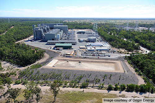 Natural gas is sourced from the coal seam gas (CSG) reserves situated in the Roma and Chinchilla regions of south west Queensland. These fields are owned and operated by Origin Energy with co-venture partner, ConocoPhillips UK. A 205km long domestic gas pipeline connecting the CGS fields and the power station was built as part of the project. The plant consumes up to 44 peta joules (PJ) of gas a year.