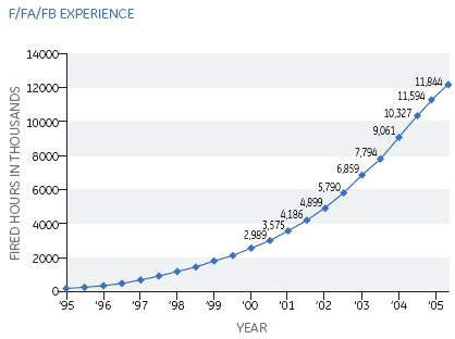 The F Class includes the 6F (either 50Hz or 60Hz), the 7F (60Hz) and the 9F (50Hz). The 7FA gas turbines can be used in combined cycle, cogeneration, simple cycle peaking and IGCC in both cycle and base load operation. High reliability—consistently 98% or better — minimizes overall life cycle cost.